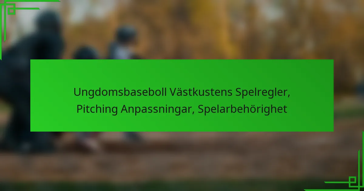 Ungdomsbaseboll på västkusten styrs av unika spelregler som skiljer sig från de nationella standarderna, vilket gör det viktigt för spelare, tränare och föräldrar att bekanta sig med dessa regler. Dessutom fokuserar anpassningar av pitching på spelarsäkerhet och färdighetsutveckling, med åldersbaserade regler och begränsningar av antalet kast. Att förstå kriterierna för spelberättigande, inklusive åldersgränser och bosättningskrav, är avgörande för att säkerställa korrekt deltagande i lokala ligor.